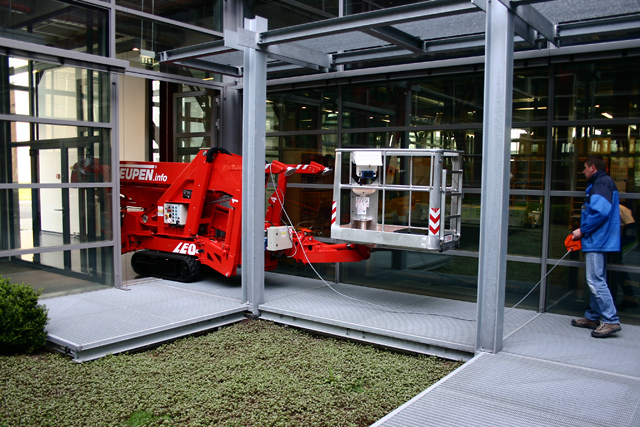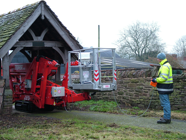 | Charakteristika | pohon dieselovým motorom Kubota alebo elektromotorom 230V, káblové diaľkové ovládanie, pracovný kôš otočný o 180°, tri možnosti šírky podpier (podľa priestorových možností) |