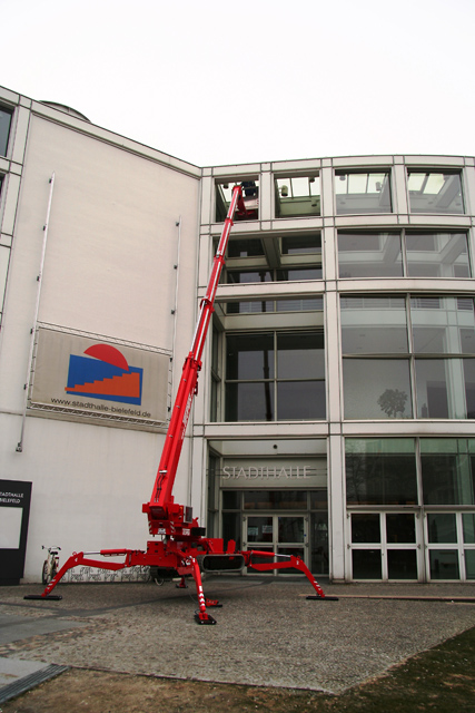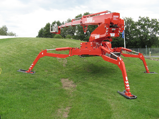 | Charakteristika | pohon dieselovým motorom Kubota alebo elektromotorom 230 V (400 V za príplatok), káblové diaľkové ovládanie, pracovný kôš otočný o 180°, tri možnosti šírky podpier (podľa priestorových možností) |