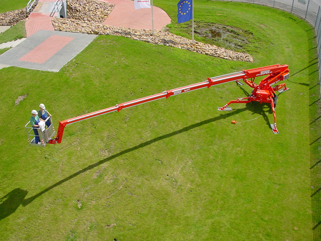 | Charakteristika | pohon dieselovým motorom Kubota alebo elektromotorom 230V (400 V za príplatok), káblové diaľkové ovládanie, pracovný kôš otočný o 180°, tri možnosti šírky podpier (podľa priestorových možností) |