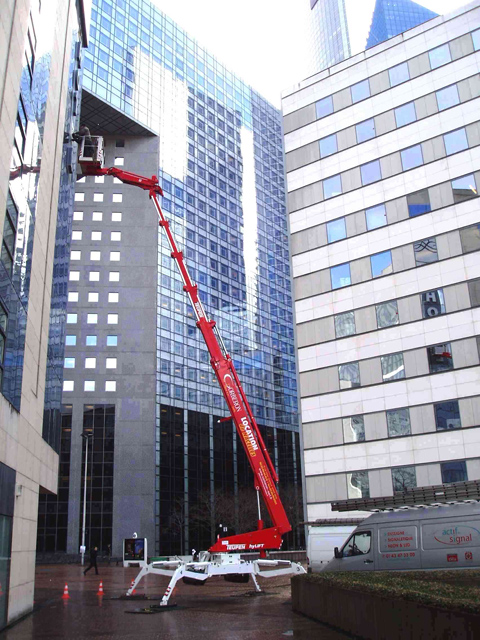| Charakteristika | pohon dieselovým motorom Kubota alebo elektromotorom 230 V (400 V za príplatok), bezdrôtové (rádiové) diaľkové ovládanie, pracovný kôš otočný o 180°, dve možnosti šírky podpier (podľa priestorových možností) |